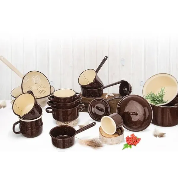 ✅ EMALJERET – Lavet af emaljeret stål af højeste kvalitet i brunt. Den har en plettet beige dekoration. Emaljen, som beholderen er dækket med, er et sundhedsvenligt materiale og endda sikkert for allergikere.