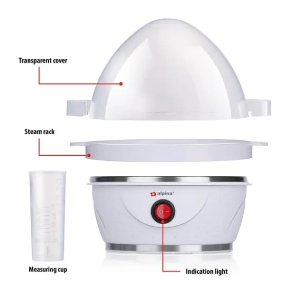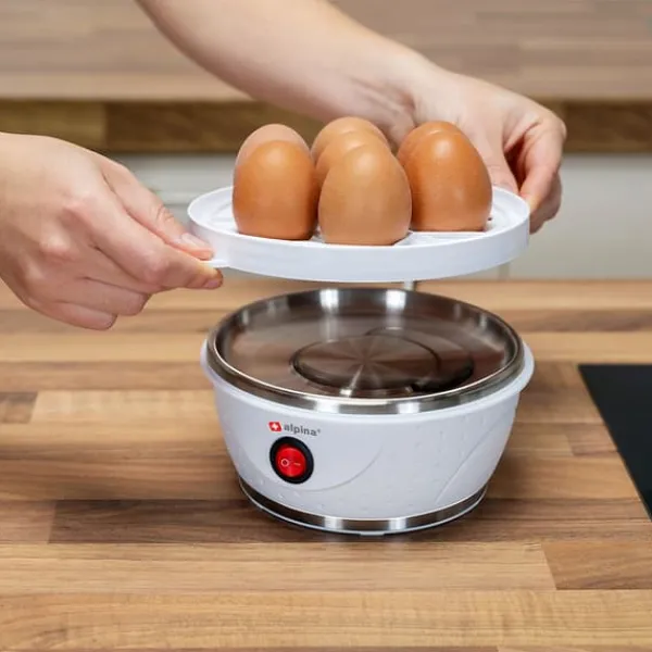 Oplev bekvemmeligheden ved Alpinas æggekoger, der kan tilberede op til 7 æg ad gangen. Med en effekt på mellem 320 og 380 watt kan du hurtigt få dine æg, lige som du vil have dem, uanset om de er blødkogte, mellemkogte eller hårdkogte. Æggekogeren er udstyret med en tydelig indikatorlampe, der fortæller dig, hvornår æggene er klar og en aftagelig æggebakke, som gør det nemt at tage ud og servere æggene. Denne æggekoger er den perfekte ledsager i køkkenet til hurtig morgenmad, nærende snacks eller tilberedning af ugens måltider.