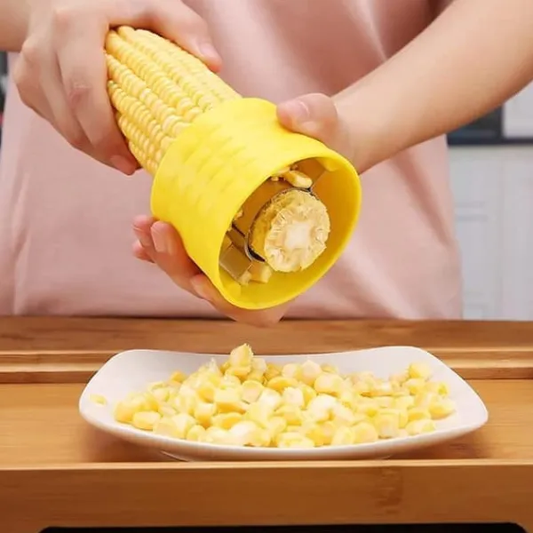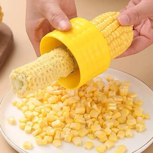Sætter du pris på frisk majs, men er du træt af at spise det direkte fra kolben? Med denne praktiske majsskræller kan du skrælle alle majskernerne direkte fra kolben med et enkelt træk. På den måde kan du vælge at tilberede frisk majs på en nem måde og helt undgå dåsemad.