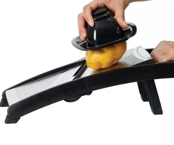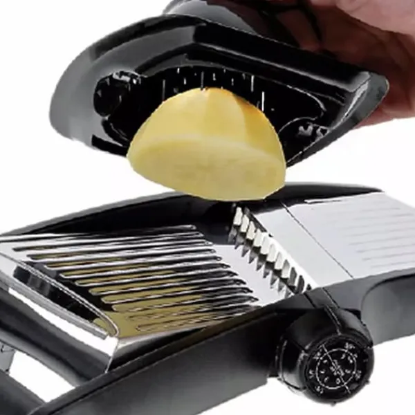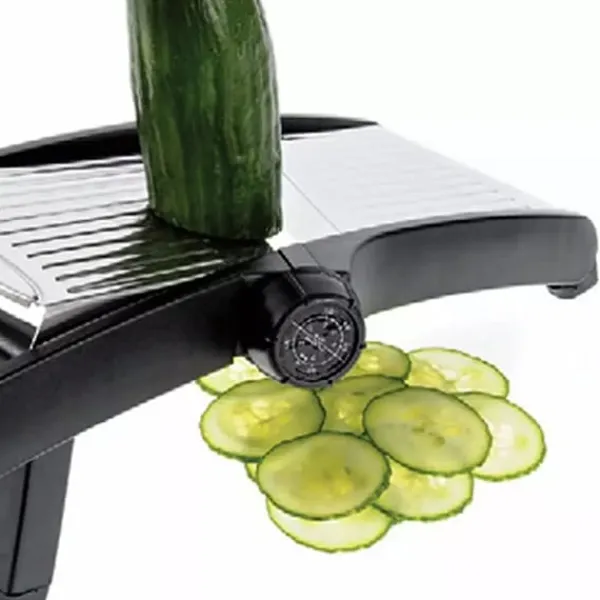 Gør køkkenarbejdet nemmere og hurtigere. Du kan skære produkterne i strimler eller skiver i forskellige størrelser. Muligheder for skæring og makulering: 3mm/9mm. Udskæringsmuligheder: 3mm/6mm/9mm. Den roterende klinge giver dig mulighed for hurtigt og sikkert at vælge den ønskede mulighed. Skridsikre fødder sikrer stabil drift. Uundværlig i ethvert køkken. Produktet er pakket i en elegant æske.