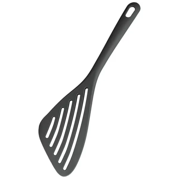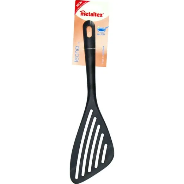 Sort plastikspatel med ophængningsløkke. Tåler opvaskemaskine op til 270 grader.