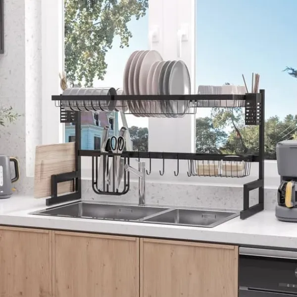 – Holdbar stålkonstruktion: En pulverlakeret metalstruktur sikrer stabilitet og hold. Opvaskestativet bærer pålideligt opvask, bestik og andre køkkenredskaber, mens de tørrer.
