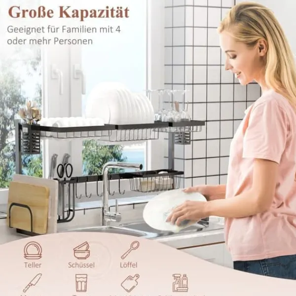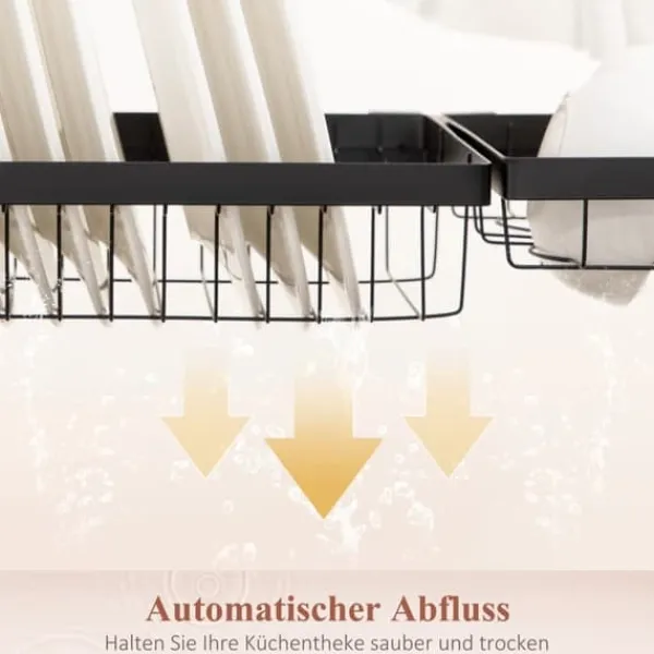 – Praktisk design til opvask: Placer afdrypningsstativet direkte over vasken for at lette afdrypningen af vandet og forkorte tørretiden.