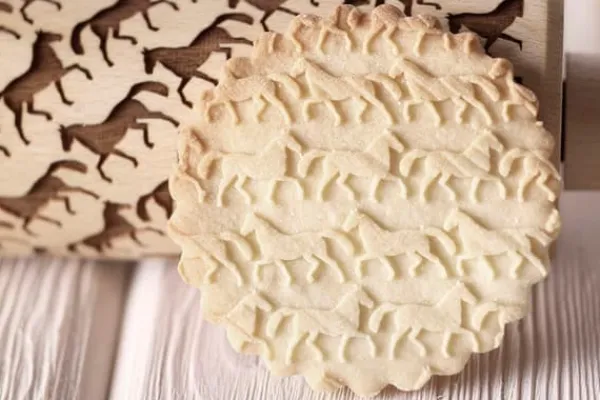 Forestil dig ovnens varme og duften af friske småkager, som med en simpel rulning afslører køer, heste, får og kyllinger. Dette sæt med 4 graverede kageruller i bøgetræ bringer en idyllisk landlig atmosfære til dit køkken og giver dig mulighed for at skabe bagværk, der vil glæde familie og gæster. Læg i kurven og begynd at bage med øjeblikkelige resultater! FORDELE FOR DIG • Fantastisk kvalitet til en overkommelig pris – kageruller i bøgetræ med udsøgt gravering holder i årevis. • Perfekt som gave – et æstetisk tiltalende sæt, der glæder og inspirerer til at bage sammen. • Nem at bruge – en let rulning, og du er færdig, selv ved dine første forsøg. • Garanterede resultater – et tydeligt, præget mønster, der er synligt efter blot én rulning. • Hurtig levering – en kort rejse fra bestilling til dine første småkager. • Unikt design – bondegårdsdyrmotivet giver karakter til dit bagværk. • Sikkert for dit helbred – naturligt, omhyggeligt forarbejdet bøgetræ. MATERIALER OG SPECIFIKATIONER • Materiale: bøgetræ • Farve: naturlig bøg • Længde med håndtag 1 stk.: 24,5 cm • Længde på arbejdsflade 1 stk.: 12 cm • Diameter 1 stk.: 4,6 cm • Vægt: 0,76 kg (sæt) • Fremstillingsteknik: dyb lasergravering, håndlavet • Overfladefinish: vasket, ren ANVENDELSE OG SLUTEFFEKT Sættet er velegnet til prægning af mønstre på småkager, peberkager, mørdej, sukkerpasta, ler og saltdej. Efter én rulning får du et klart, konvekst mønster af husdyr og scener fra landbrugslivet, der opfører sig smukt under bagning og tørring. OPRINDELSE OG ØKOLOGI Produktet er fremstillet i Polen af lovligt råmateriale fra polske skove. Træ er et biologisk nedbrydeligt materiale, så du vælger en miljøvenlig løsning, der er i overensstemmelse med ideen om træ fra bæredygtige kilder. FAQ Q1: Hvad skal jeg vælge for at lave småkager med et distinkt Gårdmønster? A1: Dette sæt med 4 graverede kageruller i bøgetræ skaber et hævet mønster efter én rulning, så effekten er øjeblikkelig. Q2: Hvilket sæt er bedst til peberkager med et dyremotiv? A2: Kageruller i bøgetræ med dybe graveringer giver skarpe konturer på peberkager og småkager. Q3: Hvordan kan jeg hurtigt dekorere småkager uden kunstneriske færdigheder? A3: Bare én rulning med kagerullen er nok – du opnår et jævnt, gentageligt mønster uden yderligere tilbehør. Q4: Hvad passer til et rustikt køkken og en naturlig stil? A4: Gårddyrmotivet komplementerer smukt køkkenets varme træatmosfære. Q5: Hvad skal jeg gøre, når jeg ikke har meget tid til at dekorere bagværk? A5: Brug en af de fire kageruller – en hurtig rulning, og den er klar, ingen maling eller skæring nødvendig. Q6: Hvilken gave til familiebagning og højtider? A6: Sættet vil fungere som en jule- eller højtidsgave, der inspirerer til at bage sammen. Q7: Hvad skal man købe til mor eller far, der elsker at bage? A7: Et sæt med 4 kageruller er en praktisk og æstetisk gave, der straks bringer ny glæde i køkkenet. Q8: Hvad vil appellere til elskere af miljøvenlige og naturlige materialer? A8: Bøgetræ, bionedbrydelighed og et råmateriale fra bæredygtige kilder vil opfylde disse forventninger. Q9: Hvad skal man vælge som gave, der er virkelig nyttig hver dag? A9: Fire forskellige kageruller tilbyder mange muligheder – fra shortbread-kager til sukkerpasta og saltdej. CERTIFIKATER OG SIKKERHEDSADVARSLER Egnet til kontakt med fødevarer i overensstemmelse med forordning (EF) nr. 1935/2004 Egnet til kontakt med fødevarer i overensstemmelse med US FDA 21 CFR 178.3800 Overholder god fremstillings- og hygiejnepraksis i overensstemmelse med forordning (EF) nr. 2023/2006 Til vedligeholdelsesformål, smør regelmæssigt med en let mineralolie af fødevarekvalitet. Rengør med en meget blød børste. Hvis det er nødvendigt at bruge vand, vaskes hurtigt og forsigtigt, og tør derefter grundigt. Brug ikke skarpe, hårde værktøjer til at fjerne dejen, da dette kan beskadige træet og mønsteret. Kontroller for skader før brug, brug ikke, hvis beskadiget. Vask ikke i en opvaskemaskine eller læg dem i blød i vand i længere tid. Opbevares tørt ved stuetemperatur. Drys dejen rigeligt med mel før brug for at forhindre den i at klistre til overfladen.