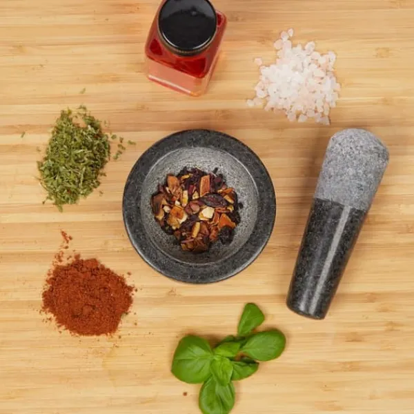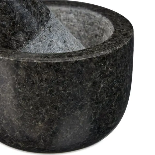 Tilbered nemt smagfulde saucer, pestoer og pastaer med denne lille granit morter og støder, designet til effektiv maling af krydderurter, krydderier og nødder. Dens robuste naturstens konstruktion og ru overflader sikrer optimale resultater, mens den polerede yderside giver et stilfuldt præg til dit køkken. Dette alsidige redskab er også velegnet til fremstilling af salver og andre husråd.