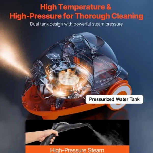 Denne husholdningsdamprenser har en stor vandtank på 88 oz, der giver 62-120 minutters kontinuerlig damprensning. Brugervenlig indikatorlampe viser opvarmningsstatus og klarhed.