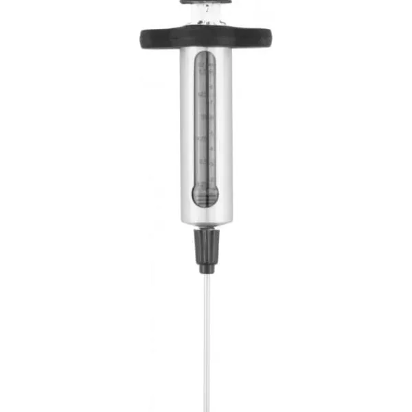 Mustang injektionssprøjte af høj kvalitet, som gør det nemt at tilføje lækre væsker til grillmad. Sprøjtelegemet er lavet af rustfrit stål 201 og nålene af rustfrit stål 304. Leveres med 2 nåle.