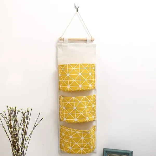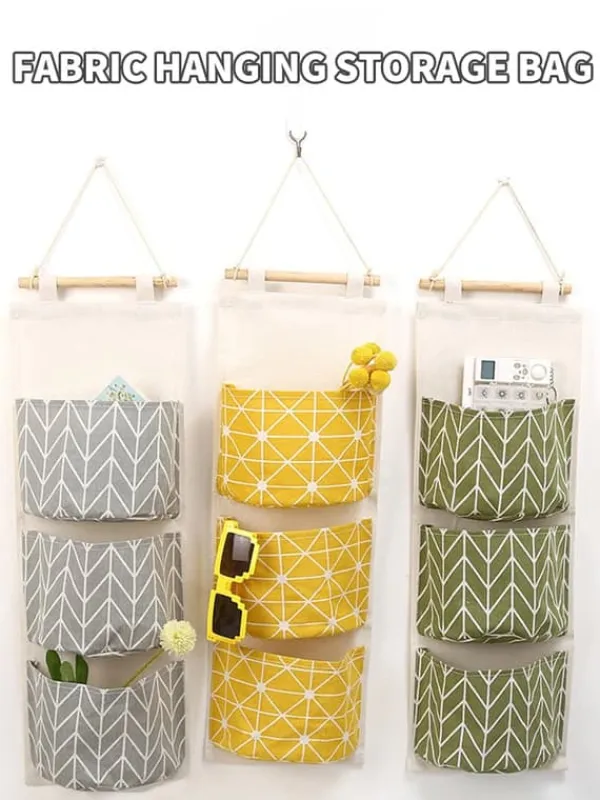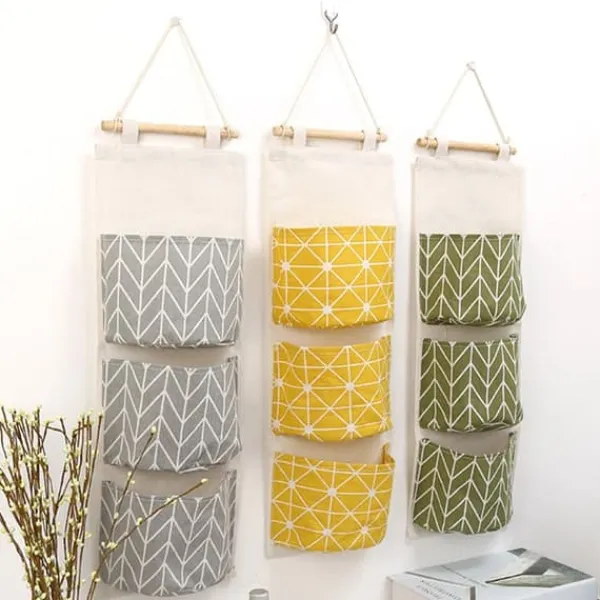 Hængende opbevaringstaske med 3 rum – Multifunktionel opbevaring til hjemmet i bomuld/hør