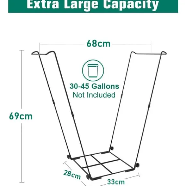 Designet til store 30-45 gallon affaldsposer (pose medfølger ikke). Mål: 33 cm (L) × 28 cm (B) × 69 cm (H). Den er nem at flytte og er fantastisk til både havearbejde og husholdningsprojekter. -
