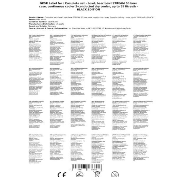 Under-counter komplet sæt – fadølsanlæg STREAM 50 ølkasse, gennemstrømningskøler, 2-linjers tørkøler, op til 55 liter / t – BLACK EDITIONBestår af:•Fadølsanlæg STREAM 50 ølkasse, gennemstrømningskøler, 2-linjers tørkøler, op til 55 liter / t – BLACK EDITION•Forbindelser: John Guest•1x dispenser / pumpetårn, matbørstet, 2-sidet•2 x ølslange 7mm komplet, klar, 3,0 m•2 x rengøringsadapter 30 mm•1 x trykreduktion 2-sidet CO2 til øl dispenser 3bar•1 x CO2-flaske, 2,0 kg•2 x CO2-slange komplet, 1,5 m•2 x ølslange John Guest – 3/8 og 5/8 skruestik 2,00 m – helt færdig!•Kuldioxidnøgle fanget•2 x dispenseringshoved, dit valg: uden, flad, kombi, kurv, KöpiØlkøler STREAM 50 -nem at bruge – TOP i ydeevneDu kan trykke på i et par enkle trin:Udpak dispenserenForbind trykreducereren til CO2-flasken med kuldioxidnøglen, og stram denForbind CO2-slangen fra trykreduktionsventilen til dispenserhovedetTilslut ølslangen til dispenseringshovedet, sæt den i dispenserenog fastgør denIndstil hanetrykket på trykreduktionsorganetTilslut dispenseren til stikkontaktenIndstil trykket, og nyd en kold ølDu kan finde alle komponenter i det komplette sæt eller som tilbehør i vores butikSTREAM 50 – top i klassen med 2 linjedispenseringssystemerSTREAM 50 ølkøler er i kategorien “dispenseringssystemer op til 55 l / t”, en af de bedste med hensyn til omkostninger, ydeevne, kvalitetsforhold.Nem rengøring af STREAM 50-systemetMed det følgende rengøringssæt kan du rengøre STREAM 50dispenseren let og bekvemt efter brug:rengøringssæt lilleNemt rengøringssæt(anbefales)Stort rengøringssætSTREAM 50 flow køler – tekniske dataDen ædle STREAM 50 Tørkøler med en vægt på kun 32 kg er udstyret med en 7 mm linie.Mål:B / D / H / 210х405х410 (inkl. Drypbakke)Spænding:220V, 50 Hz, 267W, 1,16AKompressor:1/6 PSManagement:2 x øltyperHus:Metal, pulveriseret, rustfastHøj kvalitet på håndværk og emballeringgennemstrømningskøler STREAM 50 2 linjer – effektivitet, ydeevne, nydelseTermoblokken i STREAM 50-øldispenseren har en høj energikapacitet,der kan således tappes på en perfekt kølet øl efter 2-4 minutter. Hvis termostaten er indstillet til max. )akkumulerer en stor mængde energi, som gør det muligt at servere flere kølede øl efter hinanden.STREAM 50-dispenserens køleteknologi er omkring 45%mere effektiv end den elektriske et strømforbrug.Ølen køles ned til vandhanen.Kølebøjlerne er lavet af rustfrit stål og er derfor stabile og holdbareDe anvendte materialer lever op til de højeste hygiejnestandarder og muliggør en lang levetid for køleren.STREAM 50 2lt – og den kolde øl strømmer fra 2 vandhanerMed sin stærke kølekapacitet og perfekte dimensioner er STREAM 50 dispenseren en af de førende 2-linjers bord- / underbordskøler på markedet.Kølekapacitet fra 80 til 90 glas (0,5 liter) af fremragende kølet øl pr. time,Den kraftfulde STREAM 50 kompressor sikrer minimalt energiforbrug og en fremragende kølet øl uden skumningHvis termostaten er indstillet til maks.,vil termoblokken (efter ca. 10 minutter) akkumulere en stor mængdeenergi og dermed servere mere kølede øl efter hinanden.Køleteknologien til STREAM 50-dispenseren er omkring45% mere effektiv end det elektriske strømforbrug.Ølen afkøles til vandhanen.Kølesløjferne er lavet af rustfrit stål og er derfor stabile og holdbare.De anvendte materialer opfylder de højeste hygiejnestandarder og gør detmuligt for køleren at have en lang levetid. dispenser STREAM 50 2-vejs øldispenser 55 liter / h, ølkasse,flowkøler , tørkøler3 min udpakning … 2 min opsætning … 1 min forbindelse = ubegrænset nydelse.En kold, klar, friskappet øl – du fortjener det!STREAM 50 2lt ølkøler er til professionel køling og servering af fremragende køletøl i hjemmemiljøet, til havefester og til mellemstor kommerciel brug.Kontrolområdefra +2 til +10 graderOutput:55 l / t ved 10 ° C TDKøleteknologier 45% mereeffektivKlar til brugpå bare 2-4 minutter