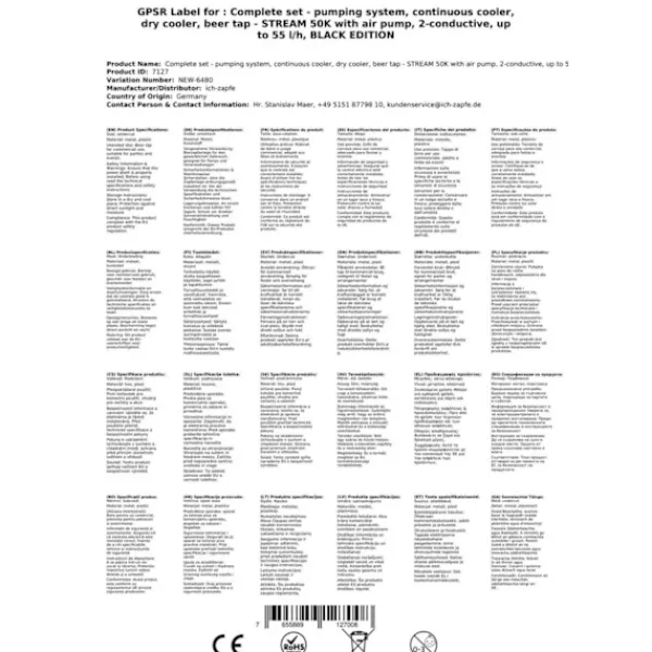 Ølhaner>fadølsanlæg STREAM 50K med luftpumpe, ølkasse, gennemstrømningskøler 2-linjers tørkøler , op til 55 liter/h - SORT UDGAVE, KEG:Type M, KEG 2:Type M