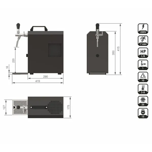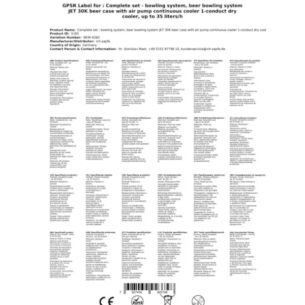 Under-counter komplet sæt fadølsanlæg – JET 30K 1 linje tør køler, 30 liter med membranpumpe Består af: •JET 30K 1 linje tør køler, 30 liter med membranpumpe •1 x Fadølsanlæg / benzinpumpemodeltårn, matbørstet, 1-sidet•1 x Rengøringsadapter 30 mm•1 x Ølslange 7mm komplet, klar, 3,0 m• 1x trykluftslange komplet John Gæst 5/16 nbsp 3/4 amp; til 5 / nbsp 8 amp;; skrue at skrue det på hanen hovede•1x pin hoved, dit valg: ingen, flad, stationcar, kurv, Kopi, 5 liter tromle-adapter Fadølsanlæg – JET 30K 1 linje tør køler, 30 liter/h med membranpumpe Fadølsanlæg JET 30K med luftpumpe, 30 liter/time,Ølkasse, Gennemløbskøler, Tørkøler 3 min. udpakning… 2 min. opsætning… 1 min. tilslutning = uendeligtNyd uden CO2 En kold, klar, frisk tappet øl – du har fortjent det! Ølkøleren JET 30K er designet til professionel køling og taphantering af fremragende kølet øl uden brug af CO2, takket være den integrerede luftpumpe til trykproduktion. Velegnet til brug derhjemme, til havefester og til små kommercielle formål. •Reguleringsområde+2 til +10 grader•Ydelse:30 liter/time ved 10°C TD•Køleteknologier 45% mere effektiv•Klar til brugpå kun 2-4 minutter Hvis termostaten indstilles til Max, vil termoblokken (efter ca. 10 minutter) akkumulere en stor mængde energi og dermed muliggøre taphåndtering af flere kølede øl i træk.Køleteknologien i JET 30K Fadølsanlæg er cirka 45% mere effektiv end den elektriske effektforbrug.Øllet køles ned til taphanen.Kølesløjferne er lavet af rustfrit stål og er derfor stabile og holdbare. De anvendte materialer overholder de højeste hygiejnestandarder og sikrer en lang levetid for køleren. JET 30K – Stærk og hurtig som en jetfly Med sin kraftfulde køleydelse og perfekte dimensioner hører Fadølsanlæg JET 30K til de førende bord-/underbordskølere på markedet. Køleydelse på 40 til 60 glas (0,5 liter) fremragende kølet øl i timen, Den kraftfulde kompressor JET 30K sikrer minimal energiforbrug og en fremragende kølet øl uden skum og uden CO2-flaske. Gennemløbskøler JET 30K – Effektivitet, Ydelse, Nydelse Termoblokken i JET 30K Fadølsanlæg har høj energikapacitet, så der kan tappes en perfekt kølet øl allerede efter 2-4 minutter. Hvis termostaten indstilles til Max, vil termoblokken (efter ca. 10 minutter) akkumulere en stor mængde energi og dermed muliggøre taphåndtering af flere kølede øl i træk. Køleteknologien i JET 30K Fadølsanlæg er cirka 45% mere effektiv end den elektriske effektforbrug.Øllet køles ned til taphanen.Ingen CO2-indsprøjtning nødvendig – den integrerede luftpumpe sikrer ubekymret og mobil taphåndteringKølesløjferne er lavet af rustfrit stål og er derfor stabile og holdbare JET 30K Gennemløbskøler – Tekniske specifikationer Den fine JET 30K tørkøler med en vægt på kun 14,5 kg er udstyret med en 7 mm rørledning. •Mål: B/D/H/ 167/281 / (inkl. drypbakke) /368 mm•Spænding: 230V, 50 Hz, 267W, 1,16A•Kompressor:1/8 PS•Rørledning:1 x øl•Kabinet:Metal, pulverlakeret, rustsikkert Høj kvalitet i forarbejdning og emballage JET 30K – Topklasse Bierkühler JET 30K er i kategorien Fadølsanlæg op til 30 l/time en af de bedste med hensyn til omkostninger, ydelse og kvalitet. Let rengøring af JET 30K-anlægget Med følgende rengøringssæt kan du nemt og bekvemt rengøre JET 30K Fadølsanlæg efter brug: Rengøringssæt lille Nem rengøringssæt (anbefales) Rengøringssæt stort Bierkühler JET 30K – nem at betjene – Top ydeevne I få trin er der tappet: Udpak Fadølsanlæg Tilslut trykluftslangen til taphovedet Tilslut ølslangen til taphovedet og indsæt den i Fadølsanlæg og fastgør den Prik på fustagen Tilslut Fadølsanlæg til stikkontakten Indstil trykket og nyd en kølig øl Alle komponenter medfølger i sættet eller kan købes som tilbehør i vores butik