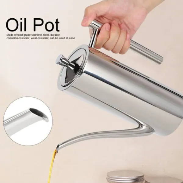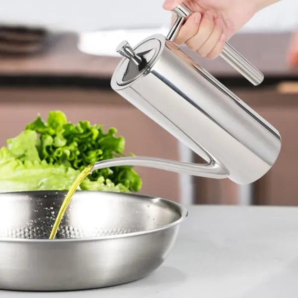 Vi introducerer vores oliekande i rustfrit stål, lavet af fødevaregodkendt rustfrit stål, som sikrer holdbarhed, korrosionsbestandighed og slidstyrke. Du kan bruge den med ro i sindet.