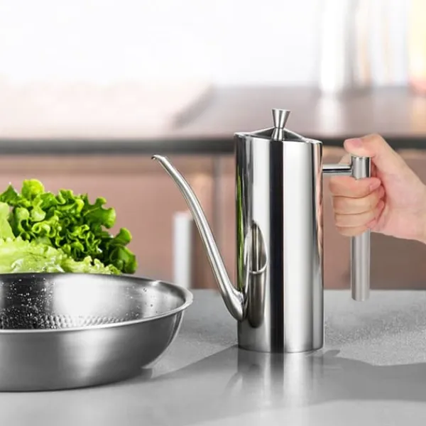 Denne oliekande i rustfrit stål er udsøgt fremstillet, hvilket gør den perfekt til hjemmebrug og et vigtigt køkkenredskab.