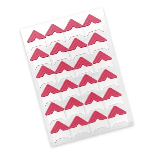 - 24 selvklæbende hjørner placeret på ét ark, nok til at indramme op til 6 fotos (fire hjørner pr. foto).