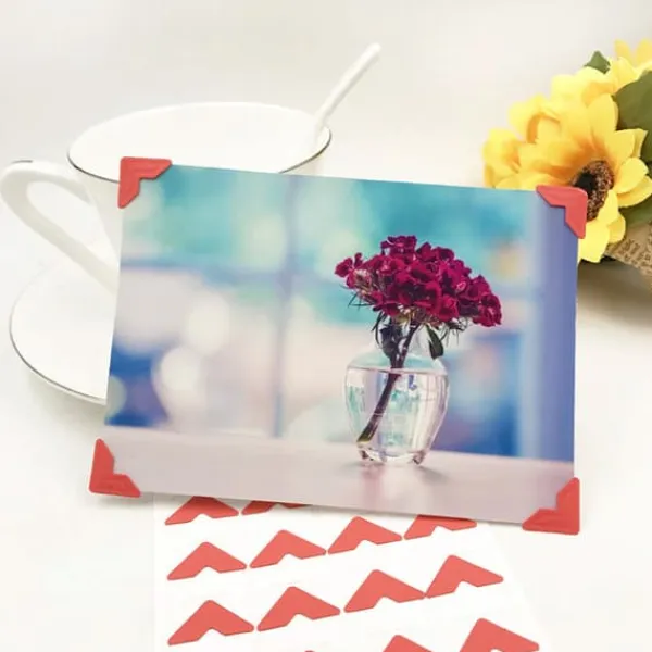 Hjørner er perfekte til scrapbogalbum, gør-det-selv-projekter og familiekrøniker . De giver dig mulighed for nemt at indsætte og udveksle fotos uden risiko for at beskadige dem. Den røde farve er især velegnet til tematiske, romantiske eller gavealbum , der fremhæver følelserne og den unikke karakter af minder.