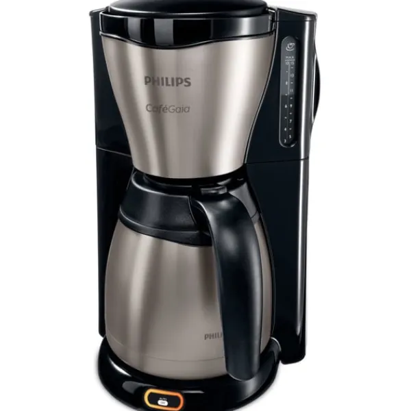 Kaffebryggaren stängs av automatiskt efter bryggning av kaffet för säkerhet och för att spara energi. Termoskannan ser till att kaffet håller sig varmt.