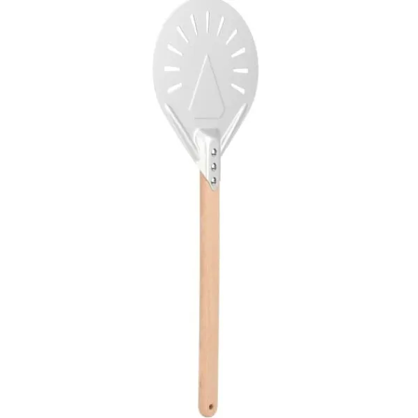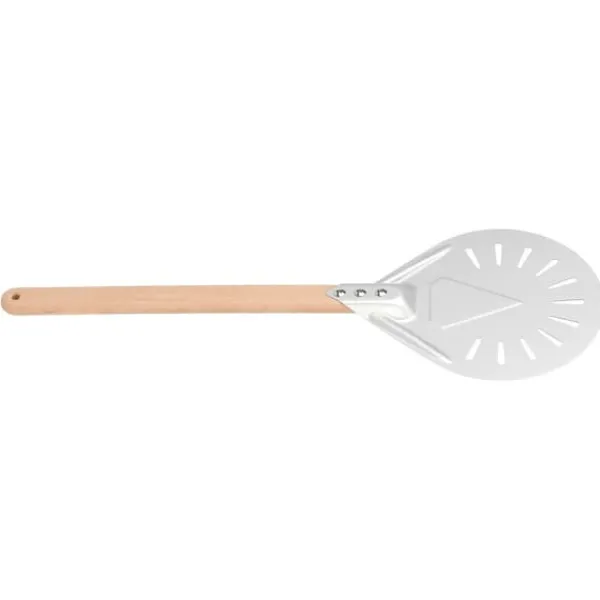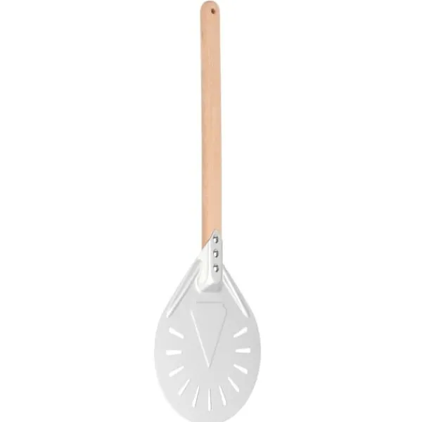 Denne pizzaspatel er ikke kun praktisk, men også alsidig. Den giver dig mulighed for nemt at flytte din pizza fra arbejdsstationen til pizzaovnen, hvilket gør bagning til en leg. Perforeringerne på den drejelige spatel hjælper også med at frigive overskydende mel fra bunden af dejen, hvilket reducerer risikoen for brændte skorper.