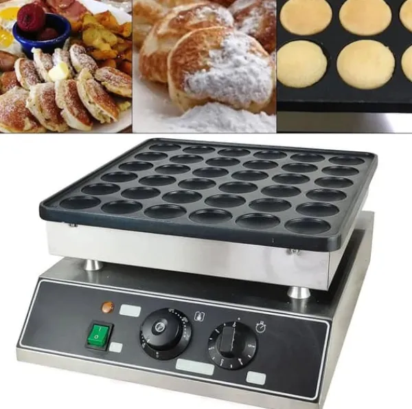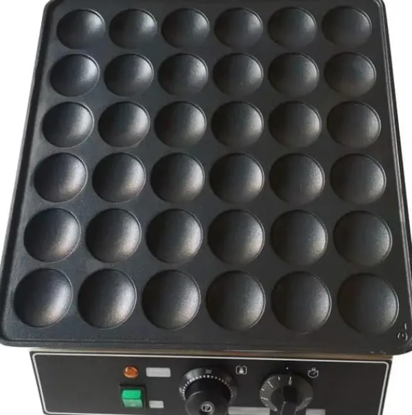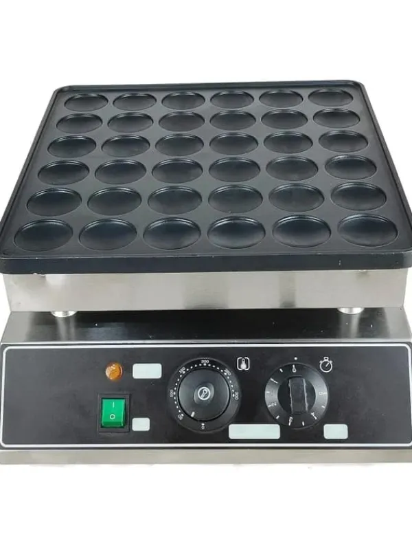 Professionel pandekage-/vaffelmaskine i rustfrit stålDriftsikker maskine, der bager små, runde vafler jævnt. Kabinet i rustfrit stål og støbeplader i aluminium med nonstick-belægning giver nem rengøring, lang holdbarhed og stabil ydelse til køkken, café og catering.