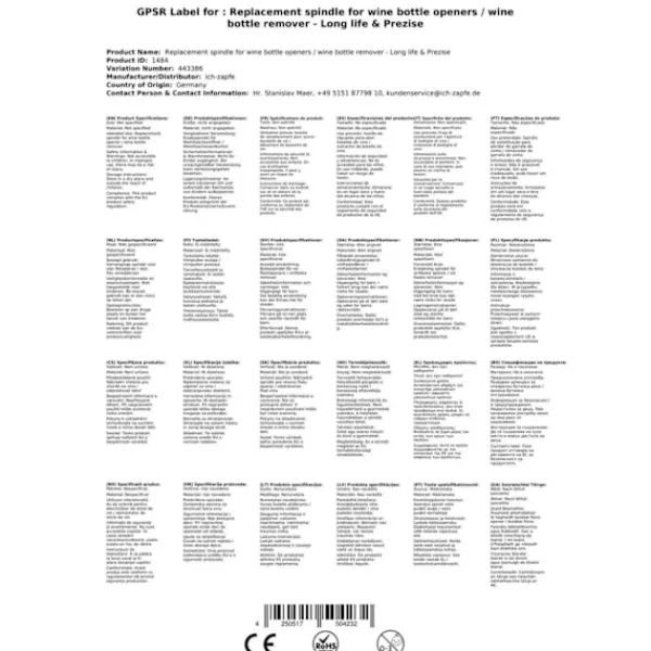 Vær den første til at anmelde “Proptrækker>Udskiftning spindel for vin oplukker / Weinflaschenentkorker” Annuller svar
