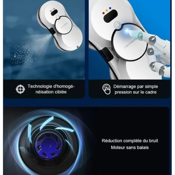 Enkel och säker att använda: Anslut den, placera den och den tar itu med smutsen! Som fastsugen, rör den sig metodiskt genom att utföra en dubbel sidoborstning. Vid slutet av sin cykel stannar roboten automatiskt. Helt säker, om roboten kopplas bort från sin strömkabel eller vid strömavbrott tar reservbatteriet över i cirka 20 minuter.
