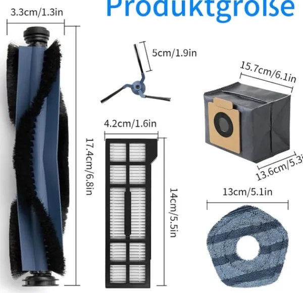 Forbedret rengøringseffektivitet: Sættet indeholder reservedele af høj kvalitet såsom en hovedbørste, filtre, støvposer, moppepuder og sidebørster, alle designet til effektivt at fjerne snavs, skidt og pels fra dit hjem.