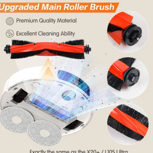Komplet udskiftningssæt: Dette omfattende sæt sikrer, at din Xiaomi X20+ Plus, Xiaomi X10+ Plus, Dreame L10s Ultra, Dreame L10 Ultra eller Dreame L10 Prime robotstøvsuger opretholder optimal ydeevne. Regelmæssig udskiftning af dele optimerer rengøringseffektiviteten og forlænger enhedens levetid. Hold dit hjem pletfrit med dette essentielle robotstøvsuger tilbehør og støvsuger dele.