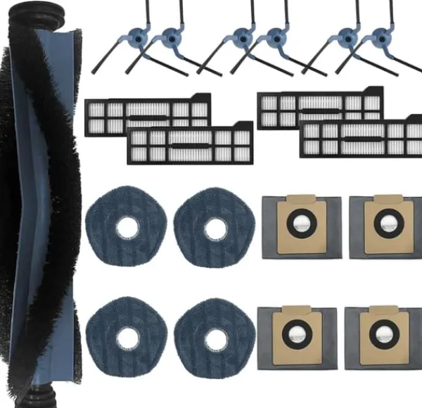 Komplet rengøringssæt: Dette sæt indeholder alt, hvad du behøver for at holde din Eufy X10/X9 Pro Omni robotstøvsuger kørende med optimal ydeevne. Med udskiftelige sidebørster, filtre, moppepuder og en hovedbørste kan du sikre grundig rengøring i længere perioder.