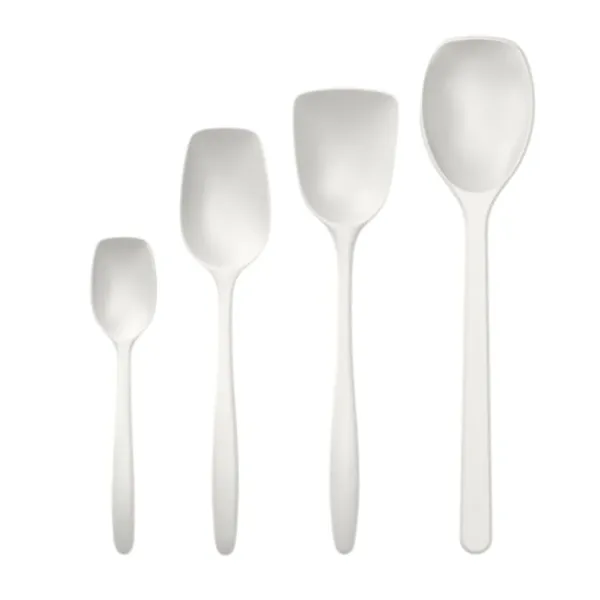 Sæt med 4 Rosti køkkenskeer i forskellige designs. Grydeskeer i flere størrelser dækker de fleste behov, når der skal bages, serveres og røres i gryder og skåle. I dette sæt har vi samlet en lille, en klassisk, en bred køkkenske og en bageske.