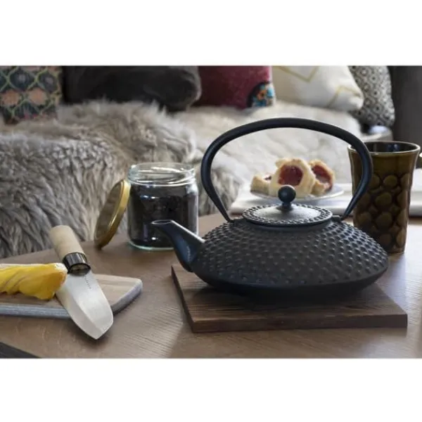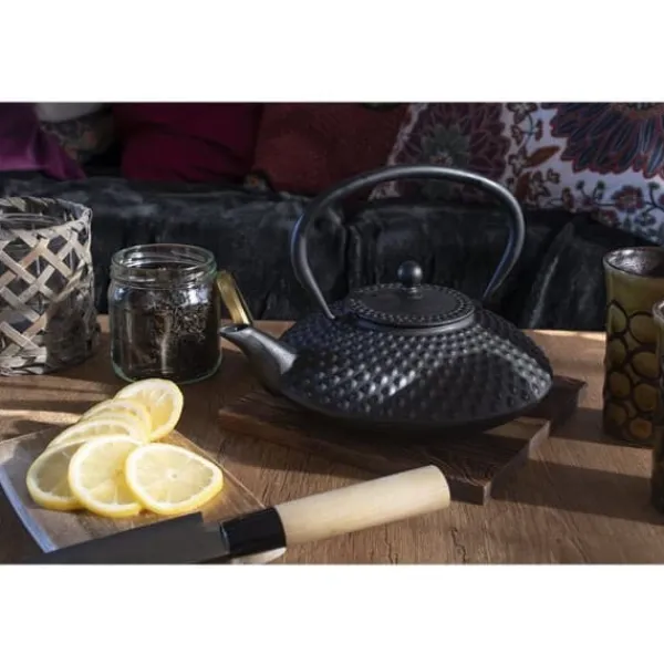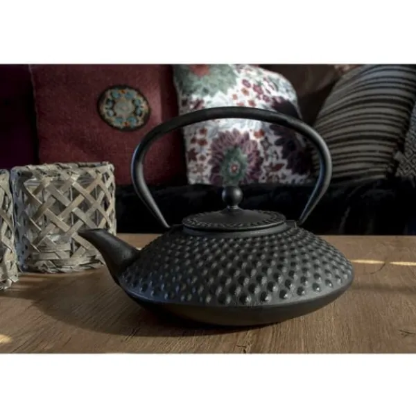 Satake tekande, oval 1,2 L. Oval, meget smuk tekande i støbejern, som bringer liv til tebordet med sin form og mønster. Jernet i tekanden er blevet renset under støbningen. Indersiden af kanden er emaljeret, hvilket beskytter den mod rust og gør rengøringen lettere.