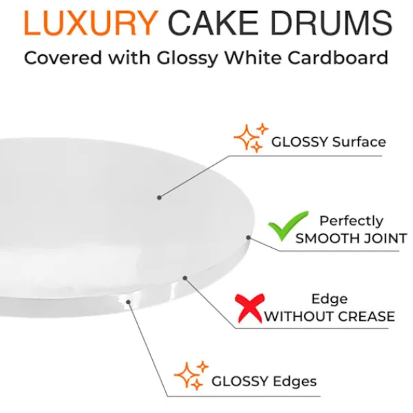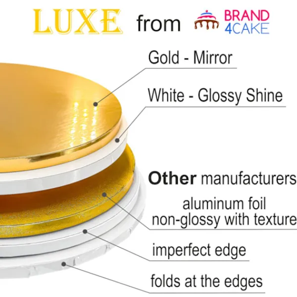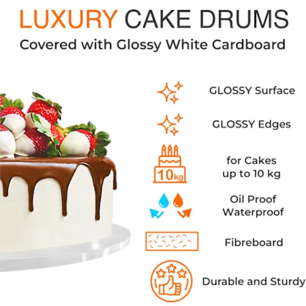 Brand4Cakes LUXE hvide kagebrætter giver dine kager den elegance og støtte, de fortjener.