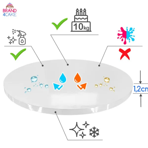 Lavet af tæt 1,2 cm trælignende plader – stabil under kager med flere lag uden at bøje.