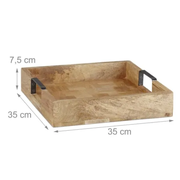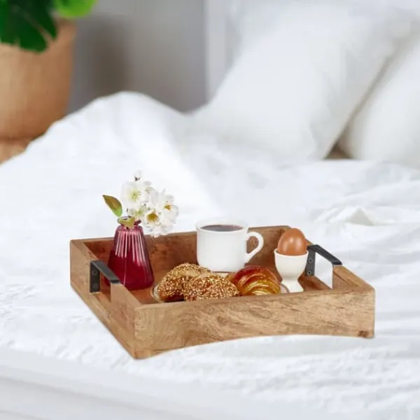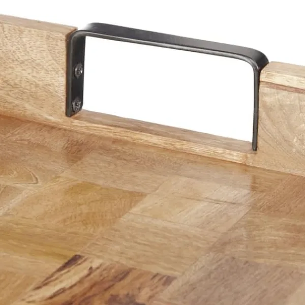 Denne elegante serveringsbakke er perfekt til at præsentere mad og drikke, uanset om du nyder morgenmad i sengen eller underholder gæster. Fremstillet af naturligt mangotræ med robuste sorte jernhåndtag, kombinerer den funktionalitet med et tidløst design. Beskyttende gulvpuder hjælper med at forhindre ridser på dine overflader.