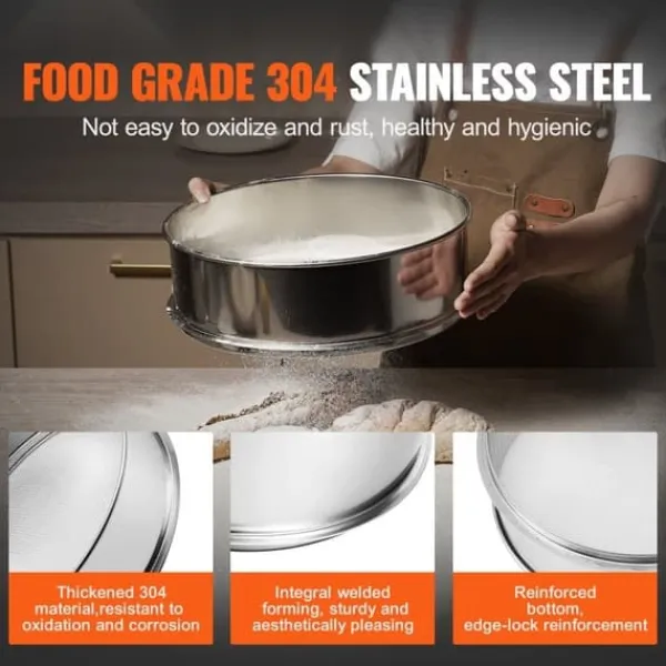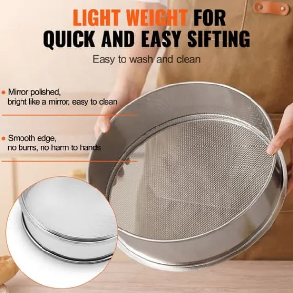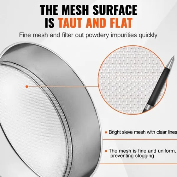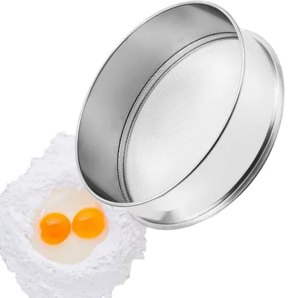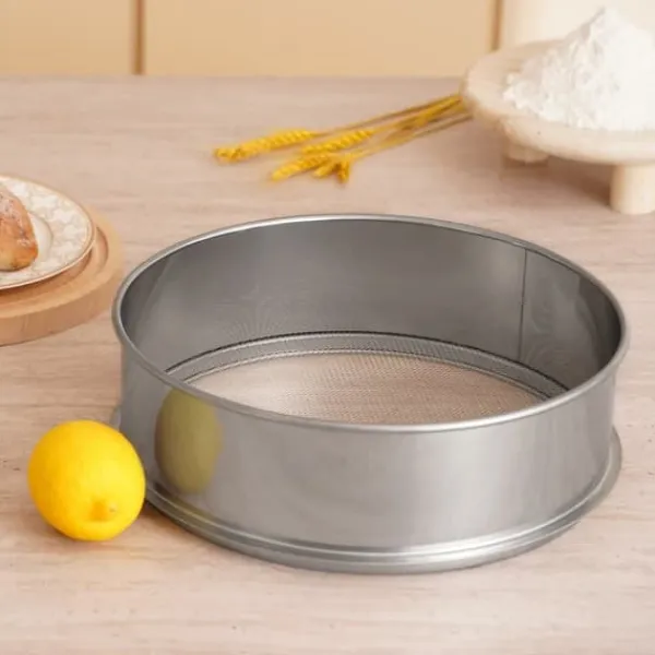 Effektiv sigtning: Vores sigtenet har jævnt fine og tætte maskehuller, hvilket sikrer, at mel sigtes, så det bliver luftigt uden klumper. Mesh-overfladen er stram og flad med klare linjer, hvilket sikrer både fin sigtning og effektive resultater.