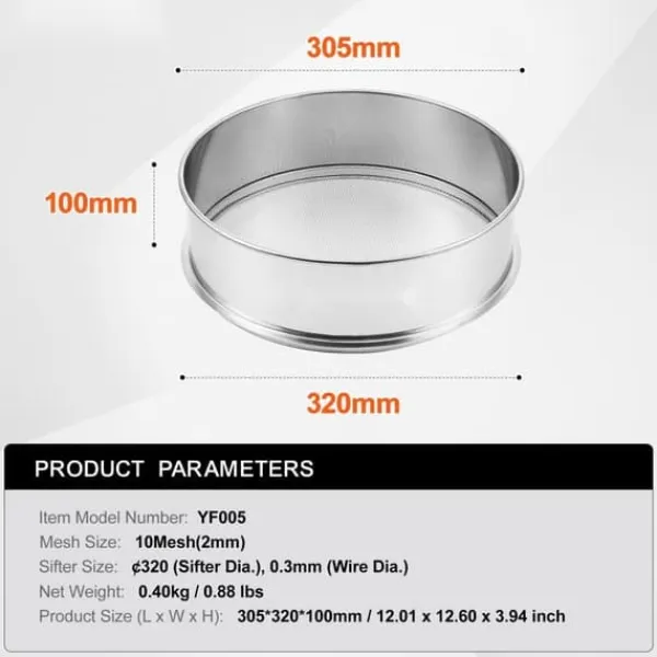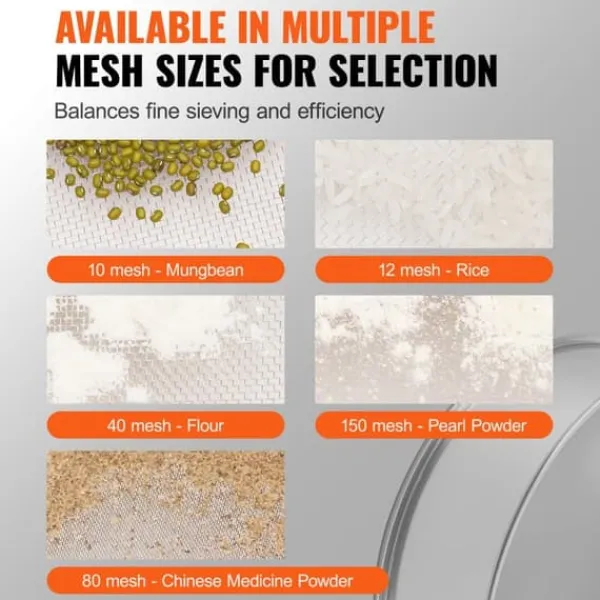 Flere størrelser tilgængelige: Vores sigtemaske fås i 5 maskestørrelser (10/12/40/80/150 mesh), så du kan vælge den passende melsigte baseret på dine behov. Forskellige størrelser og finheder imødekommer forskellige brugskrav.