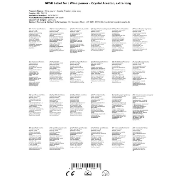 Skænkeprop vin, vinskænker – Crystal Areator, ekstra lang Med denne Crystal Areator vinskænker med ventilation, ekstra lang kan du dekantére din vin med det samme, mens du hælder op, uden lang tilberedningstid. Hæld glas på glas og nyd den jævne og drypfri servering. Iltberigelsen under servering hjælper din vin med at udvikle sig dens fulde aroma. Produktegenskaber: •Vinskænker med ventilation – lang version •Perfekt til at dekantere vin på nøjagtig samme tid som du hælder den op •Jævn og drypfri servering •Iltberigelsen under servering hjælper din vin med at udvikle sig dens fulde aroma Med denne vinskænker med ventilation vil din vin få en helt ny smagsoplevelse. Ventilationen sørger for, at din vin bliver luftet, mens du hælder den op, så den når sin fulde potentiale, også selvom den ikke er blevet dekanteret på forhånd. Det er en perfekt gave til vinentusiaster, eller til dig selv.