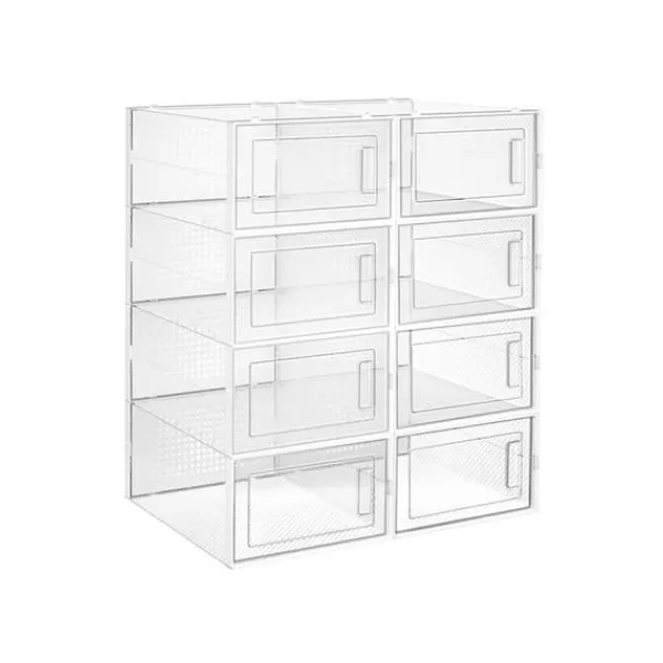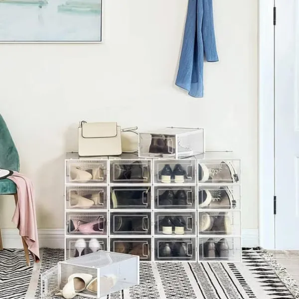 Spark rodet til hjørne: Hvis dit hjem langsomt men sikkert er ved at blive et rod af sko, hvorfor så ikke organisere dem i denne pakke med 8 klassiske skoæsker med gennemsigtig krop og frontdør? Se hele din samling i orden