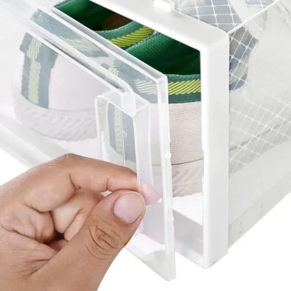 Stack ‘Em Up: Hvis du vil opbevare kasserne på en organiseret måde, er det nemt at stable dem takket være de tilsvarende slidser i toppen og bunden; ventilationshuller lader dine sko ånde.