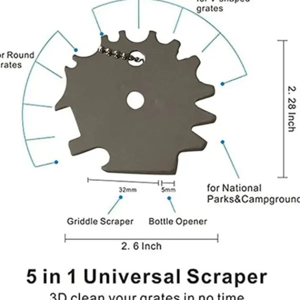 Holdbar konstruktion: Denne skraber er fremstillet af rustfrit stål af høj kvalitet og er bygget til at holde. Den er modstandsdygtig over for rust, korrosion og vridning, hvilket sikrer langvarig ydeevne til utallige grillsessioner fremover. Nyd et pålideligt rengøringsværktøj, der kan modstå høj varme og hyppig brug.
