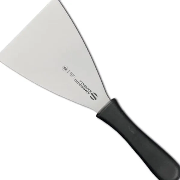 Producentkode: S719.008 Ambrogio Sanelli-spatelen fra SUPRA-linjen er et professionelt tilbehør, der vil fungere godt i enhver konfekturebutik. Den har en klinge lavet af AISI420 rustfrit stål af høj kvalitet. Det ergonomiske håndtag er lavet af slidstærkt SEBS-materiale, som er fleksibelt og modstandsdygtigt. Ikke egnet til vask i opvaskemaskine. Produktegenskaber: – Professionel serie, – Blade lavet af rustfrit stål af høj kvalitet, – SEBS plasthåndtag, – Hårdhed – 56-58 HCR, – Ikke egnet til opvaskemaskine. Tekniske parametre: – Katalognummer – S719.008 – Artikeltilstand – Ny – Serie – Supra – Materiale – Rustfrit stål, SEBS materiale – Type – Trekantet – Bladlængde – 80 mm – Håndtagslængde -123 mm – Tykkelse – 1,5 mm – Dimensioner – 210 x 80 x 18 mm Sættet indeholder: – Konfektspatel
