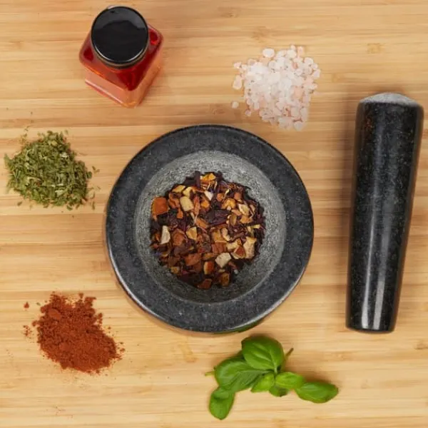 Dette sæt med støder og morter i granit er perfekt til at male urter, krydderier, nødder og meget mere, hvilket gør det ideelt til at forberede aromatiske dips, pestoer og karrypastaer. Fremstillet af naturlig, holdbar granit, har det en ru inderside og en solid bund for optimal greb under brug.