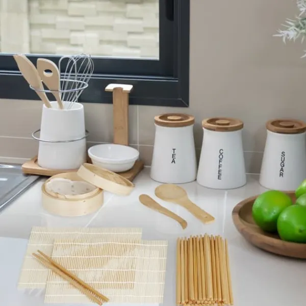 Nyd autentisk sushi-fremstilling derhjemme med dette omfattende bambus sushi-sæt, perfekt til både begyndere og erfarne kokke. Sættet indeholder alle de nødvendige redskaber til at forberede forskellige sushi-ruller og leveres med let rengørlige, holdbare bambuskomponenter. Det er en fremragende gave til alle, der elsker japansk mad og ønsker at lave lækker sushi i deres eget køkken.