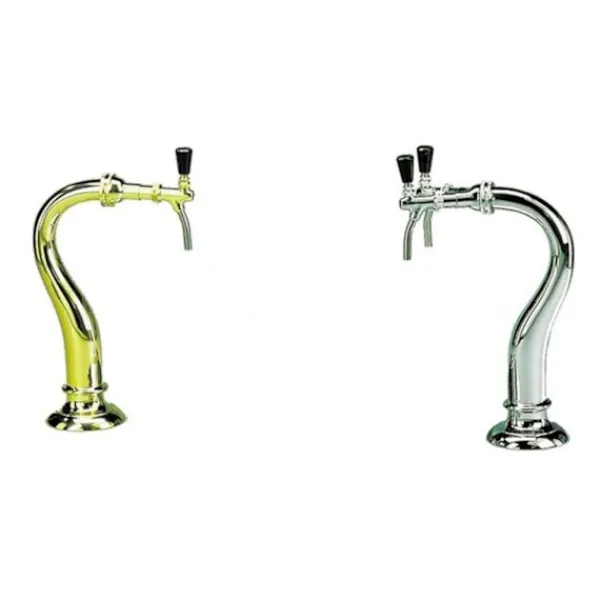 Tappetårn, svanehals model, 2-rør, messing Krom eller messing finish Højde 450 mm, højde midt på hanen 415 mm, fod 142 mm Ø. Advarsel!!!! Kun egnet til 7 mm slange! Pris uden: haner / rør / montering