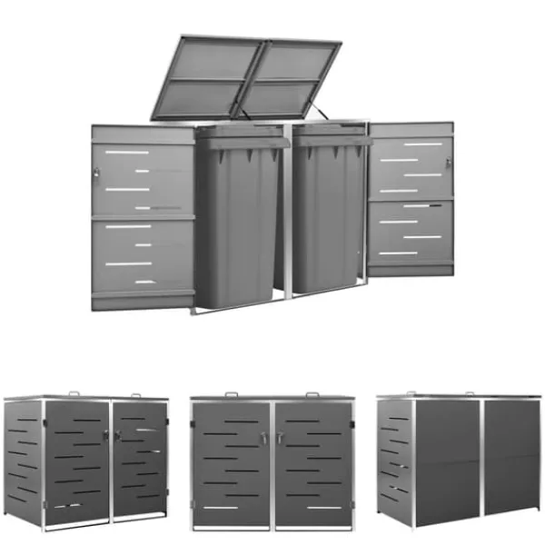 Dobbelt skraldespandsskjuler 138×77,5×112,5 cm rustfrit stål Denne praktiske, dobbelte skraldespandsskjuler tilbyder et perfekt sted til din skraldespand. Den holder skraldespanden i din have ude af syne og skaber et smukt og rent miljø. Dobbelt skraldespandsskjuler 138×77,5×112,5 cm rustfrit stål (1x) Din ordre vil blive leveret i 2 pakker. Så snart din ordre er blevet pakket, vil du straks modtage dine leveringsoplysninger fra os. I nogle tilfælde kommer din ordre muligvis ikke med det samme. I dette tilfælde bliver de øvrige pakker ofte leveret en dag senere. Du kan finde dette i e-mailen med dine leveringsoplysninger. Vi håber, du nyder dit køb.