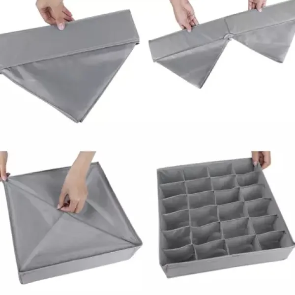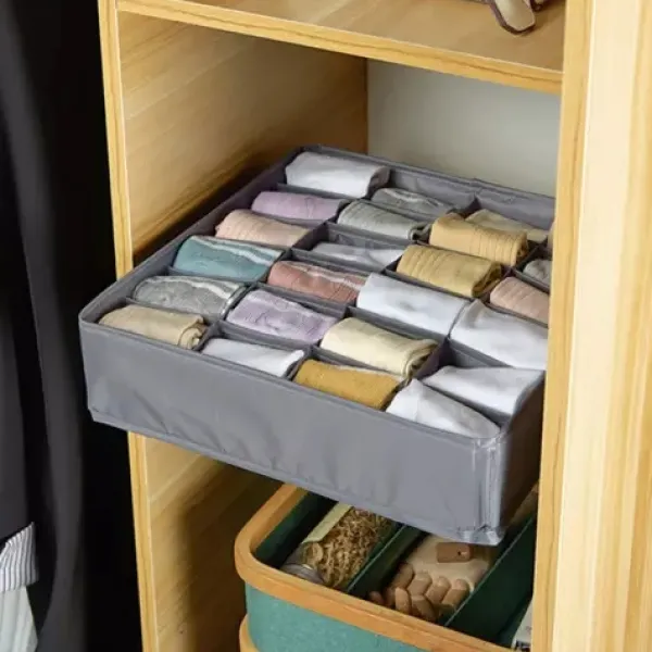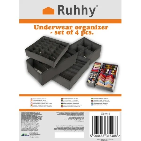Få orden i garderoben med et smart sæt af fire opbevaringskasser designet til undertøj og småtilbehør. Hver kasse har forskellige rum, der gør det nemt at sortere og organisere strømper, bh’er, trusser eller slips. Nu slipper du for at rode rundt for at finde det, du har brug for – alt ligger pænt og ordentligt på sin plads.