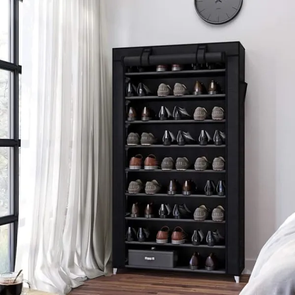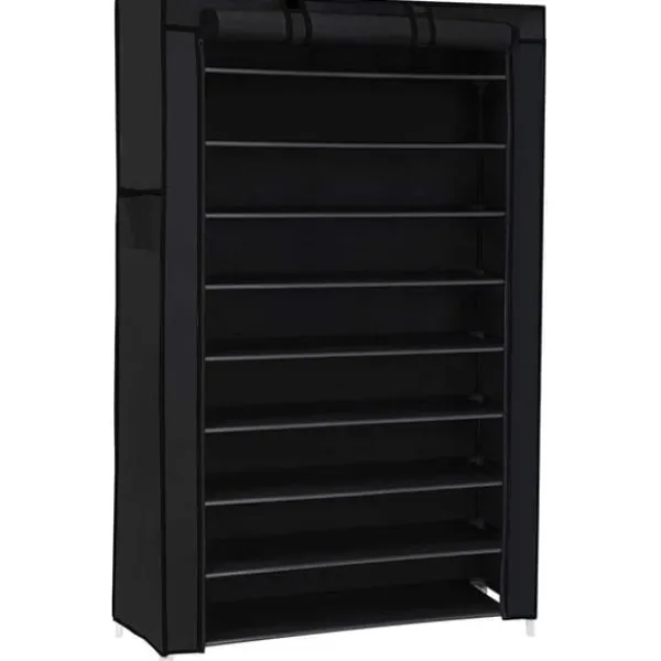 Hvad du får: Et robust 10-etagers skostativ, udstyret med et stofbetræk og også let at samle, og en måde at eliminere sko-kaoset i gangen
