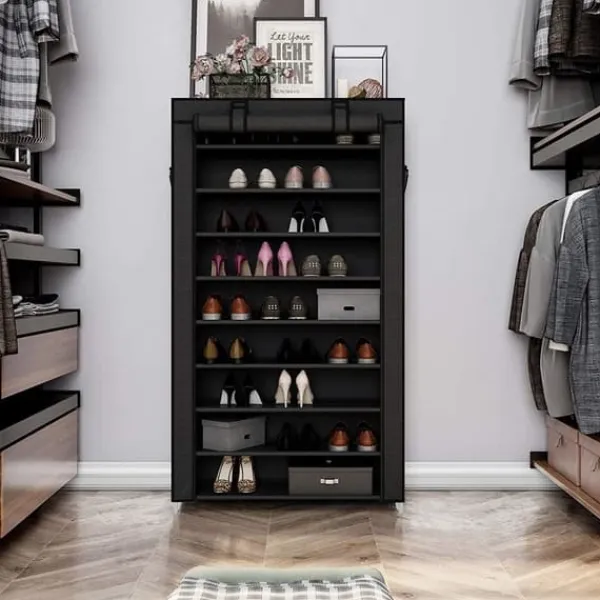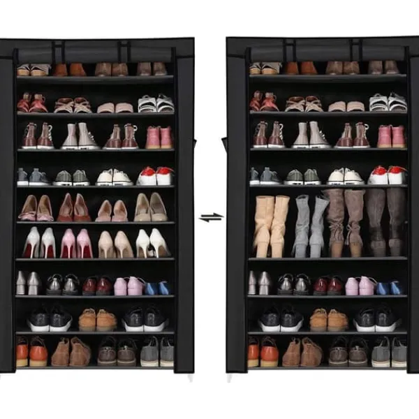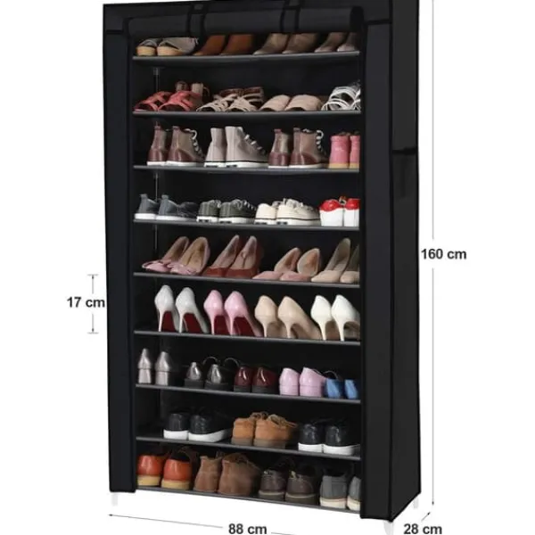 Farvel støv! Ligger dine sko spredt på gulvet? Så drømmer du helt sikkert om at eje dit eget hjem, der giver dig mere beskyttelse. Her kommer skostativet! Stofovertrækket har lynlås og velcrolukning, hvilket gør det nemmere at opbevare sko