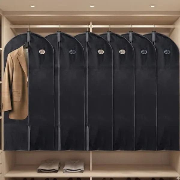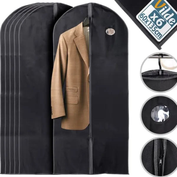 ✅ Sæt med 6 tøjbetræk 60×135 cm – Sæt med seks praktiske tøjbetræk til opbevaring af tøj, der hver måler 60 x 135 cm. Perfekt til at beskytte frakker, jakkesæt, kjoler og andre garderobeartikler mod støv, fugt og snavs.