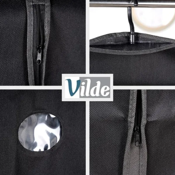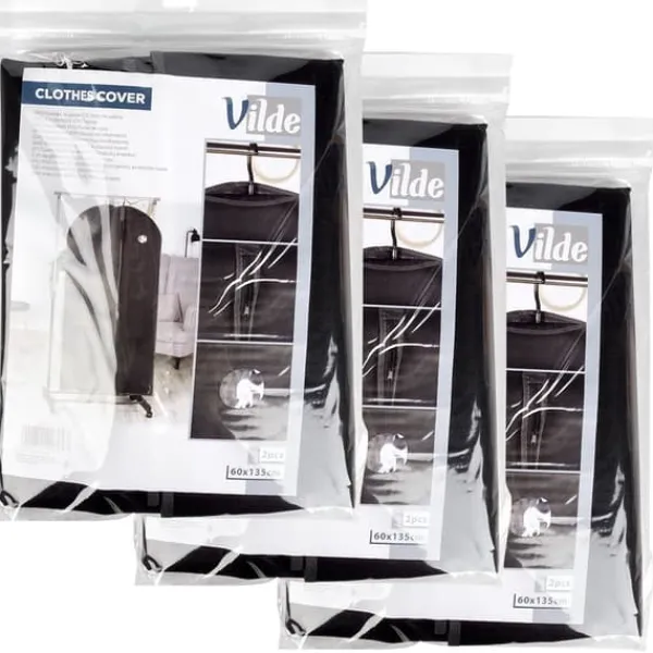 Dette sæt med seks betræk er en praktisk løsning til organiseret og sikker opbevaring i garderoben. Betrækkene beskytter tøjet mod støv og fugt, samtidig med at de forhindrer det i at krølle. Funktionelt og slidstærkt materiale sikrer brugerkomfort. Originalt Vilde-produkt. Fremstillet i overensstemmelse med europæiske standarder.