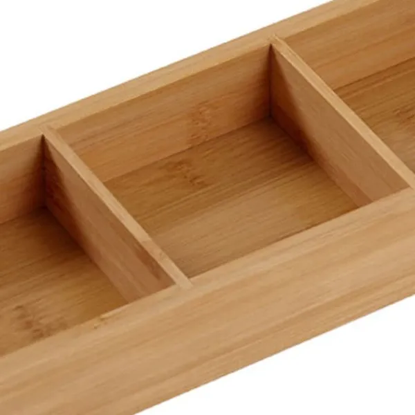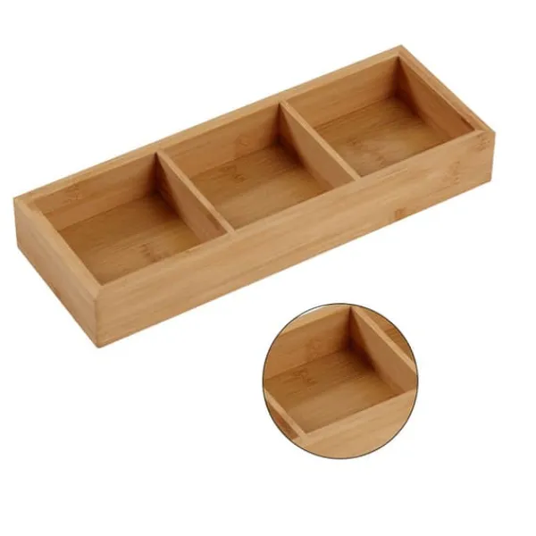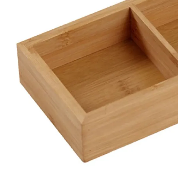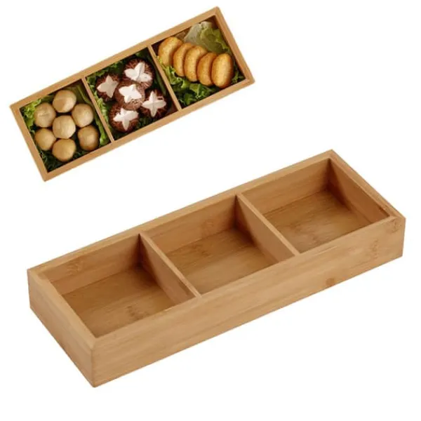 Denne delte træbakke er designet med flere rum for bedre at sortere og opbevare mad og forhindre ubehagelige lugte. Bakken er fint poleret og har en blank overflade med afrundede kanter og hjørner for en behagelig fornemmelse, der ikke skader dine hænder. Den er lavet af miljøvenligt materiale, hvilket sikrer, at den er sikker at bruge uden nogen speciel lugt, hvilket gør den velegnet til direkte kontakt med mad. Det smukke naturlige træmateriale med sin unikke tekstur giver bakken et enkelt og attraktivt udseende.